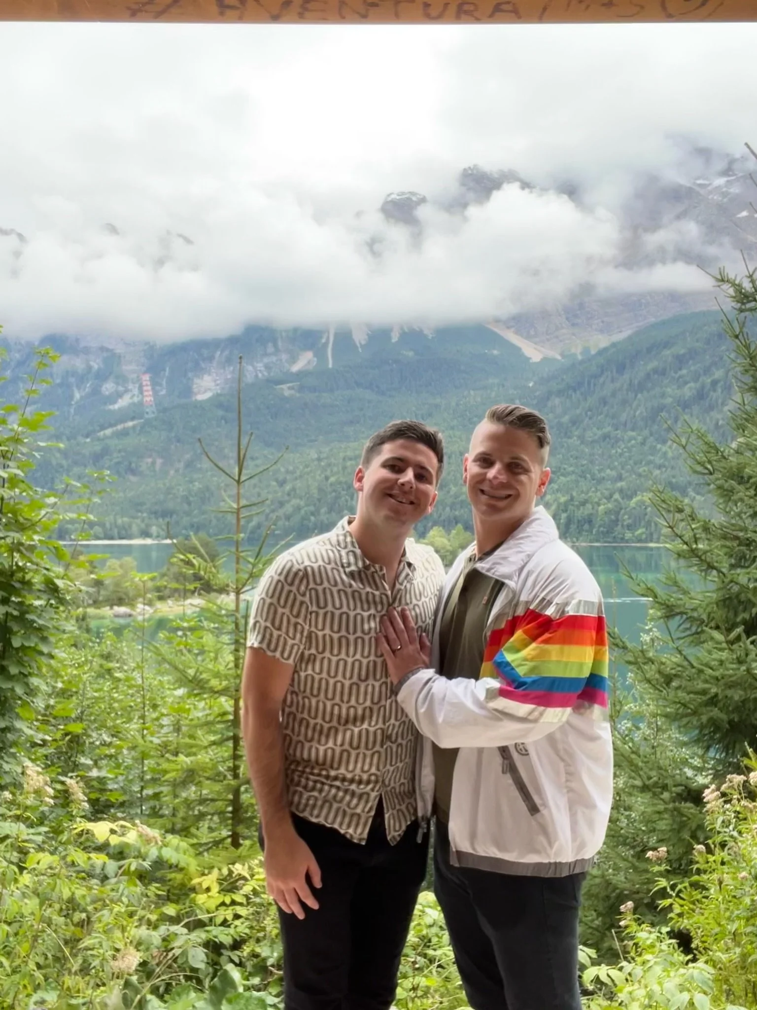 For our birthdays in 2023, we both decided that instead of a gift, each of us would plan a day of our trip in Europe without telling the other what we were doing. Neither of us knew at the time we decided to forgo the gift, but we would each end up proposing on the days we chose. Eric’s day started in Munich, where he rented a car to drive us out of the city to Garmisch-Partenkirchen in the Alps. We went to lunch, took a walk around Lake Eibsee and Eric proposed by the lake to which Wes said “Of Course!(!!!!!!)”